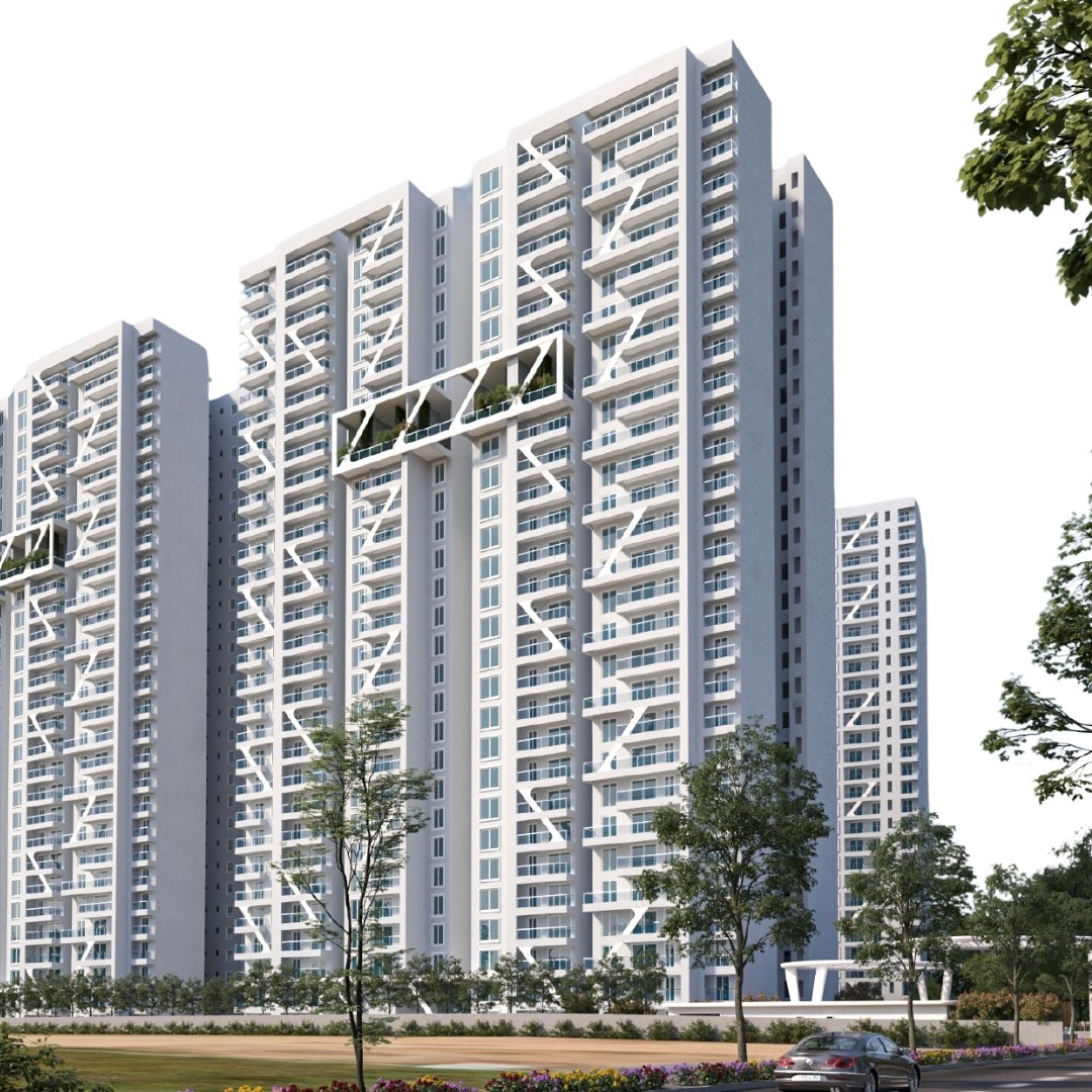 Choose from thoughtfully designed 1 BHK (666 sq.ft), 3 BHK + 2T (1,611 sq.ft), 3 BHK + 3T (1,915 sq.ft), and 4 BHK (2,481 sq.ft) homes, all with premium fittings, high ceilings, and private balconies overlooking the 77,000 sq.ft clubhouse.